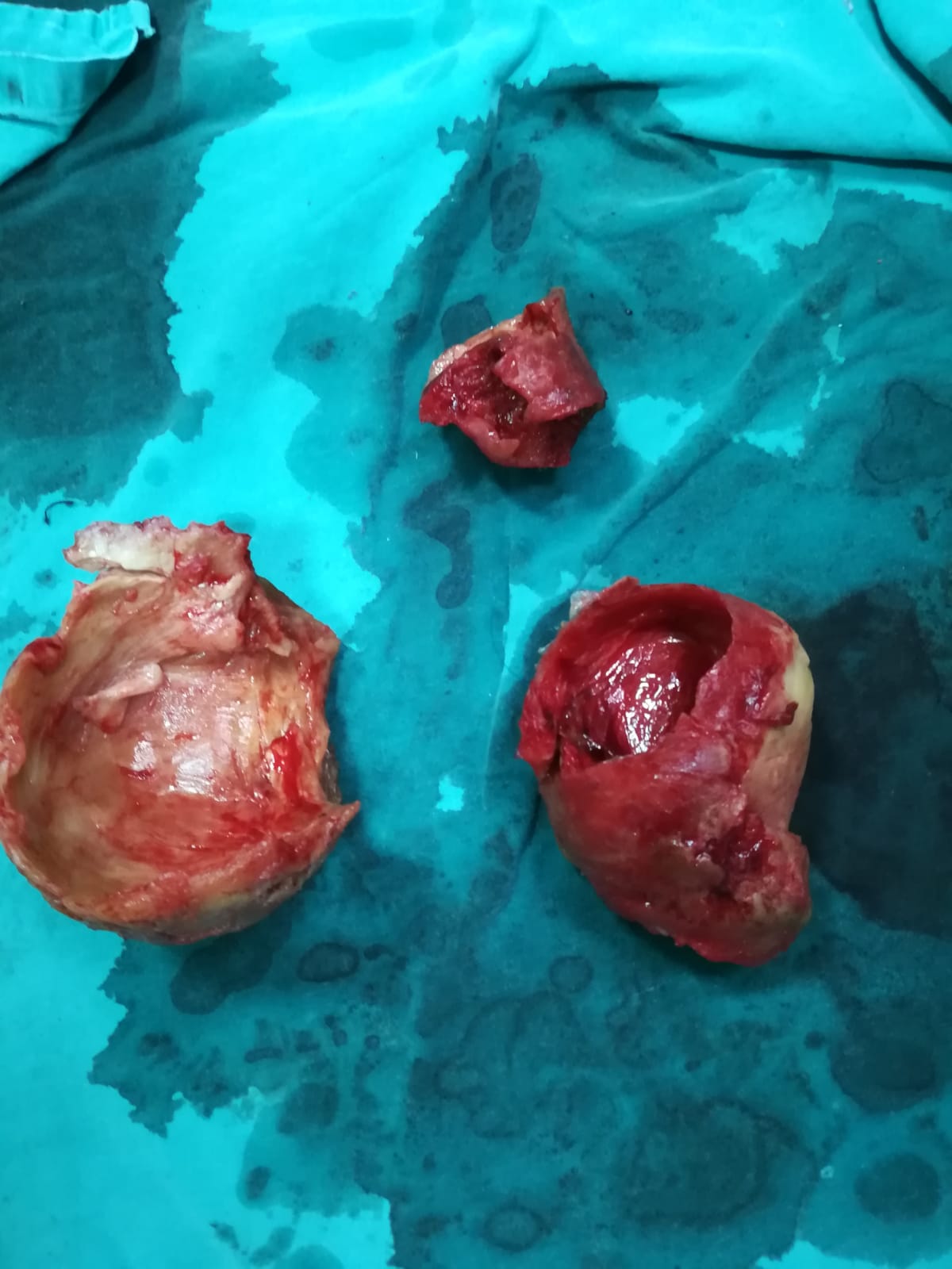 58 Yaşında hasta karındaki aort damarında genişleme (aort anevrizması) ve damarda yırtılma sonucunda acil olarak ameliyata alındı. Hastanın genişleyen ve yırtılan damarı başarılı bir operasyon ile değiştirildi. Aşağıdaki resimde genişleyen aort damarı içerisinde zaman içerisinde birikerek damar duvarını katman katman saran pıhtılar görülmektedir. Normal aort çapı karın bölgesinde 2.5-3.5 cm arasında değişmektedir. Bu hastada ölçülen damar çapı yaklaşık 10 cm olarak belirlendi.