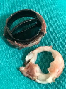 Daha önceden metal kapak takılmış olan hastanın nefes darlığı ve çabuk yorulma neticesinde tetkikleri tekrar değerlendirildiğinde kapak açılımının yeterli olmadığı ve kapak çalışmasının bozulduğu belirlendi. Bunun üzerine tekrar ameliyat edilmesine karar verildi. Ameliyat esnasında sorunlu olan yapay kapak çıkarıldı. Kapak altında sonradan gelişen pannus dokusu (beyaz halka şeklindeki yapı) da temizlendi. Hastaya yeni bir kalp kapağı takıldı. Ameliyatın ardından hastanın şikayetleri hızla kayboldu ve eski sağlığına kavuştu.