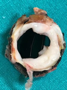 ort kapağında bozulma nedeniyle nefes darlığı ve çabuk yorulma şikayetleri bulunan hastanın ameliyat edilmesine karar verildi. Hastanın ileri yaşı nedeniyle biyolojik kapak (sığır veya domuzdan elde edilen kapaklardan bir tanesi) takılması planlandı. Operasyon esnasında ortada görülen yapı, sığır kalp zarından üretilmiş olan yapay kalp kapağıdır. Kapak yerine yerleştirilmiş durumdadır.
